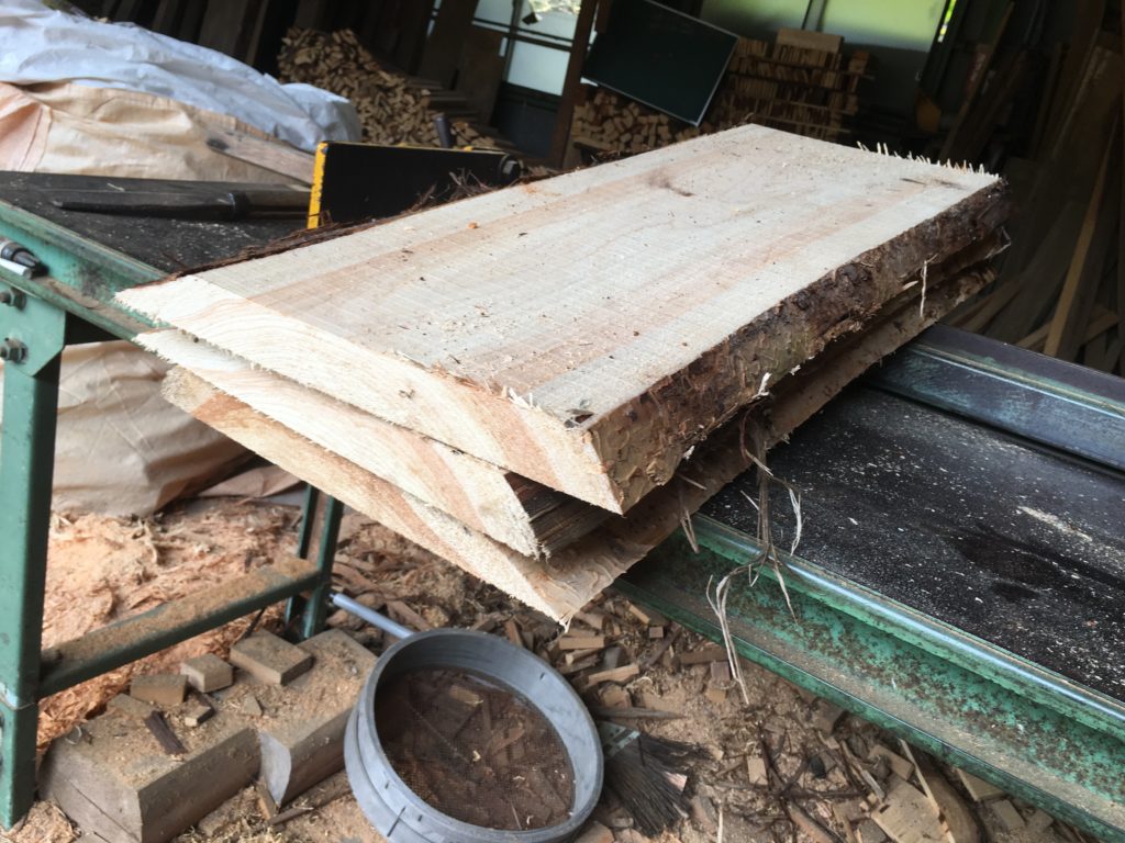 カウンター材の製材。一枚一枚やっております。良い香り漂います♪