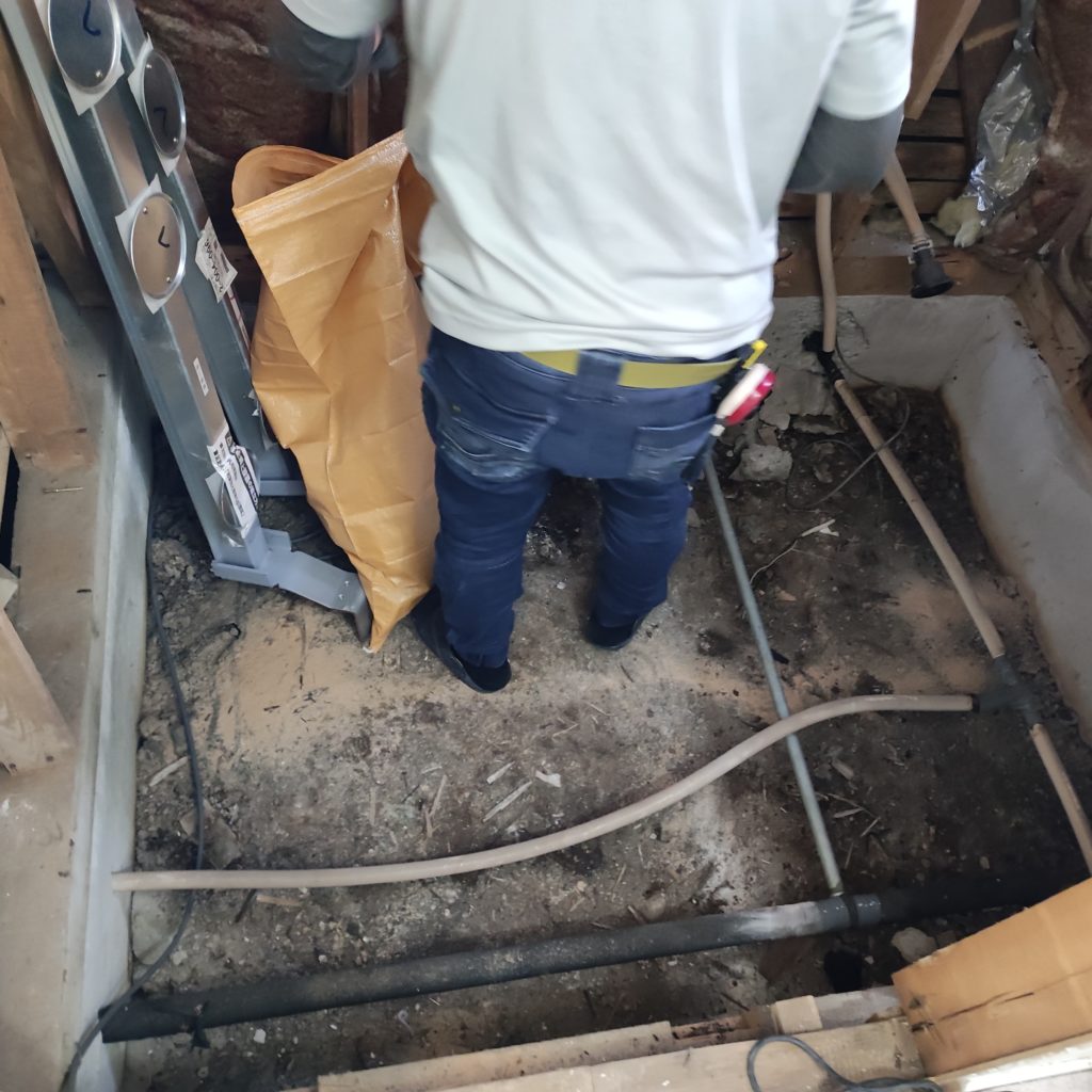 土台(ユニットバス用)と床下が見えてきます。