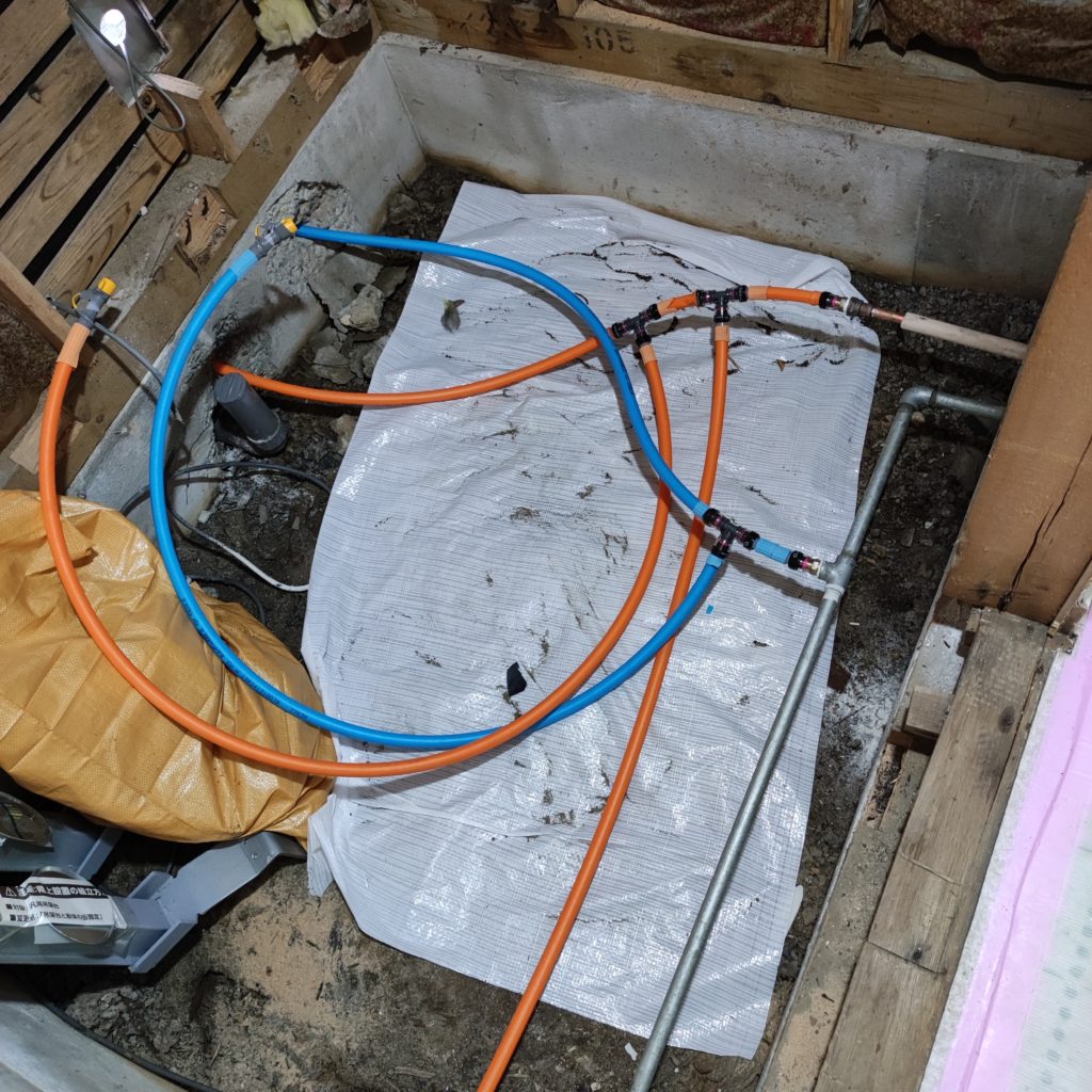 昔の配管は鉄管で錆が出ているので、樹脂製のハイブリッドホースに交換。