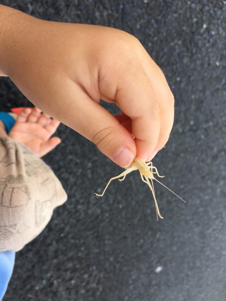 田んぼを見ていたら、見事にバッタ君をゲットしました。もうちょっと優しく待ってあげてくれ〜笑