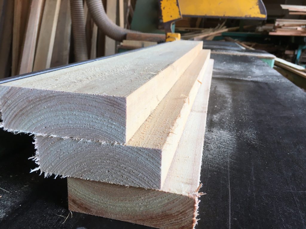 製材は建築材が多いから、材を作る時はほぼこの尺貫法で考えています。たまに家具材や小物の材料を作る時は、考え方を変えています。これ実は以外と手間がかかったりして、一本の丸太からどう取ろうかなって、手を止めて考えるんです。(考えるのは有効活用する為に良い事)