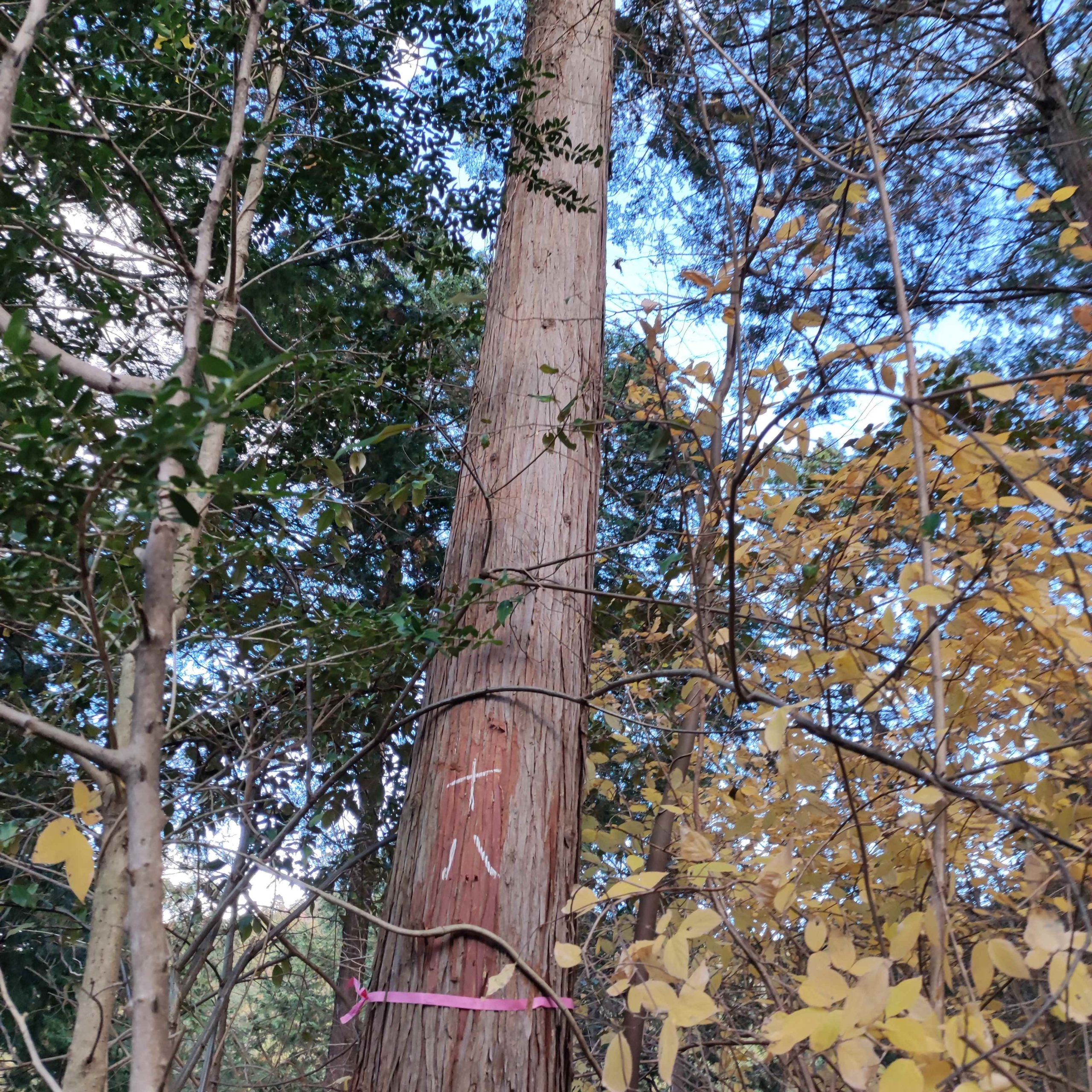 選木とは文字通り伐る木を選んで、テープやチョークで印をつけること。