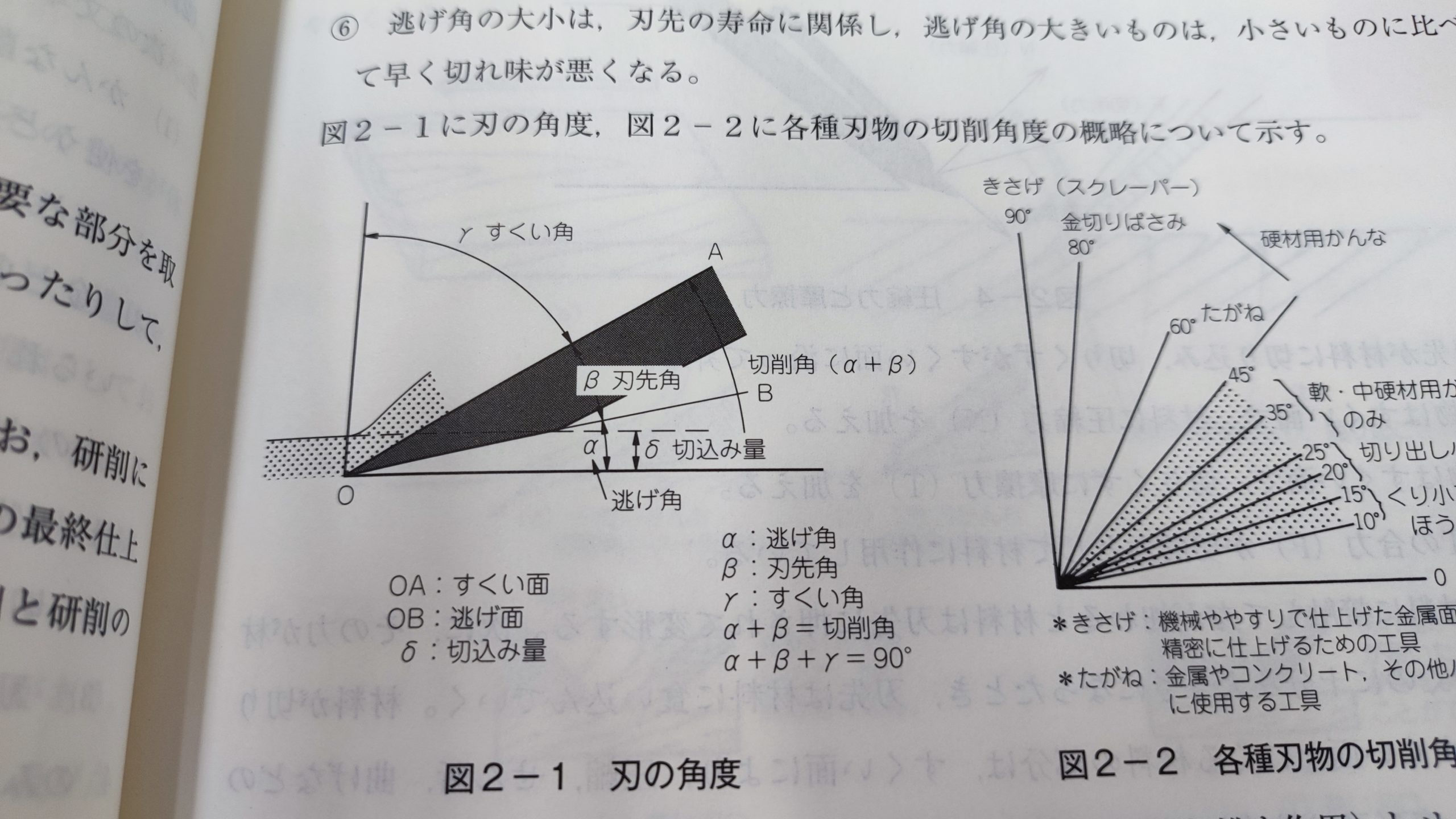 ②切削角が大きくなるほど、硬い材料の削りに向く