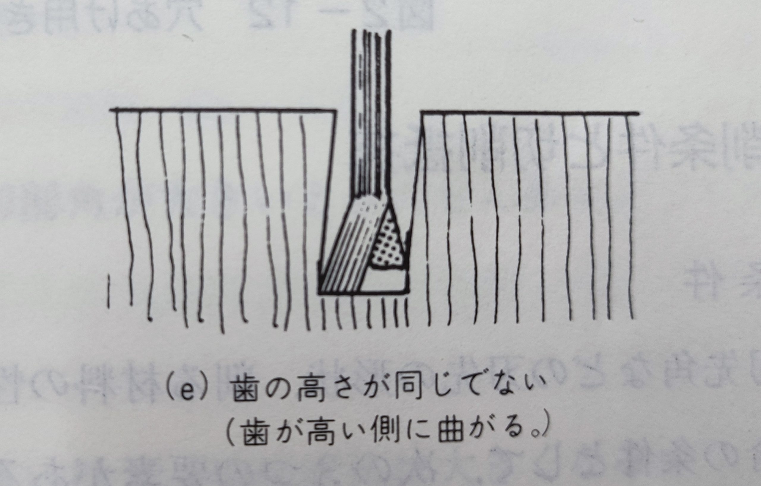 ・左右のあさり角度が揃ってないと、鋸挽き線が曲がる。
