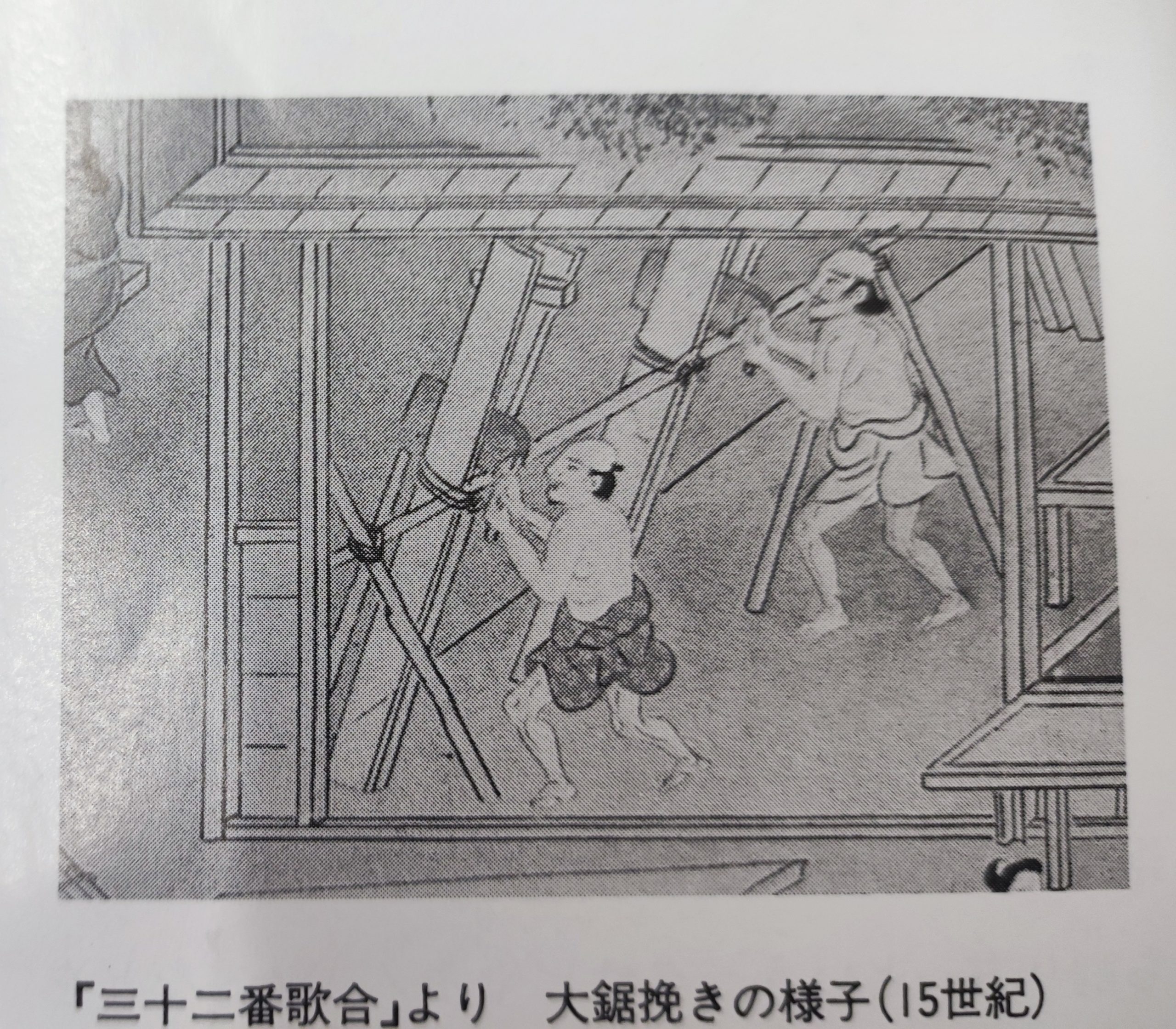 今日は製材の歴史を少し見ていこうと思う。「大鋸おが」=大きなノコギリが日本に登場した15世紀、各地で手挽き製材が盛んに行われるようになった。その挽き方は、材の設置の仕方て名称が異なり、「すくい挽き」と「立て返し」があり、全国でほぼ同じ呼び方をされていた。