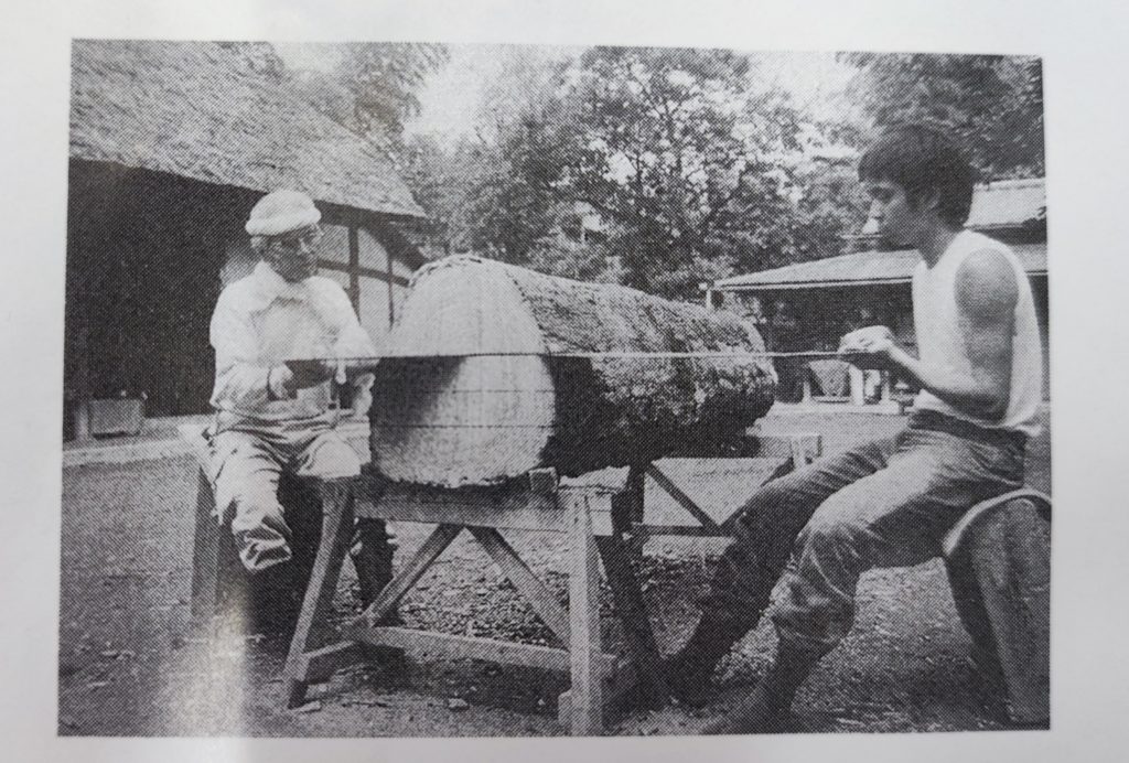 昼休みは木挽の歴史について勉強中なので、前回の「木取り」「墨掛け」に続いて挽く作業を見てみよる