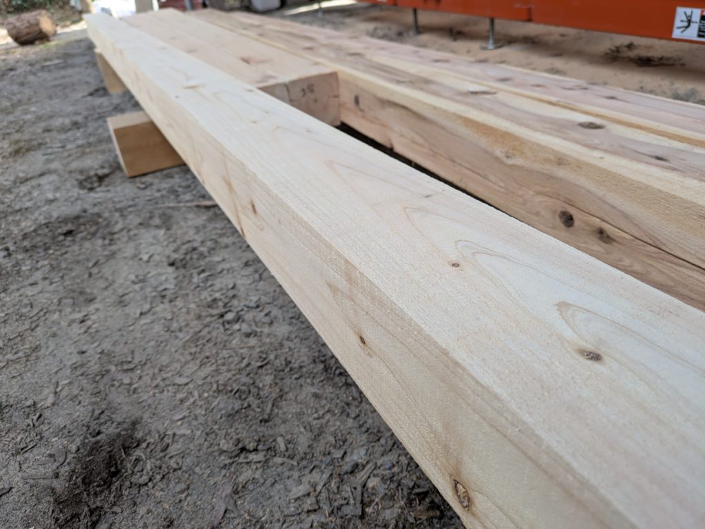 埼玉県鳩山町「喫茶幻」様の店舗建築に向けて、本日は、建物の骨組みとなるスギとヒノキの「製材」を始めました。刃を入れた瞬間に立ち上がる清々しい香りから、木材の「生命力」を感じます。この香りに包まれ、木一本一本の癖を読みながら理想の寸法へ挽いて行きます。静かに木と向き合い一切の妥協が許されない作業です。削りたての清らかな木肌は、年月とともに深い味わいを持ち、お客様の空間を優しく守ります。土台から、空間を支える一本の柱まで一本一本製材していきます。